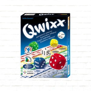 Qwixx je hitra in zabavna igra za vso družino ali družbo prijateljev. Vrzi kocke in prekrižaj rezultat. Ker vsi igrate istočasno, lahko to storijo tudi drugi. Toda samo ti lahko prekrižaš še drugo polje. Več križcev = več točk. Enostavno zabavno!