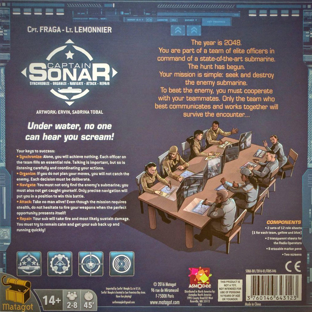 V družabni igri Captain Sonar teče leto 2048. Ste član-ica elitne mornarice, ki poveljuje najsodobnejši podmornici. Vaša naloga je preprosta: najti in uničiti nasprotnika.