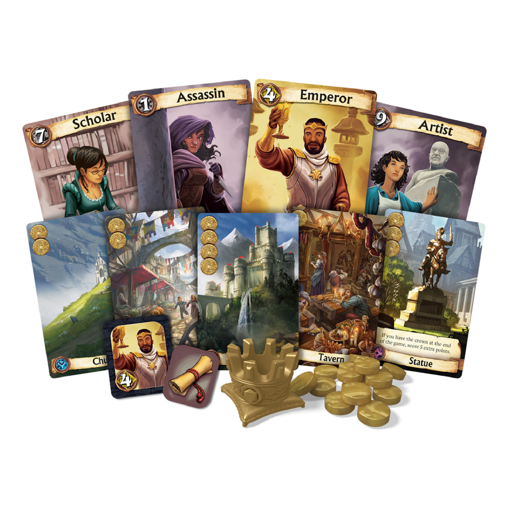 "Discover the classic game of bluffing and drafting in a bumper new edition! Choose different roles each round (with 27 in the box) and predict your opponents' choices to acquire gold and erect impressive buildings as you chase the highest-scoring districts."