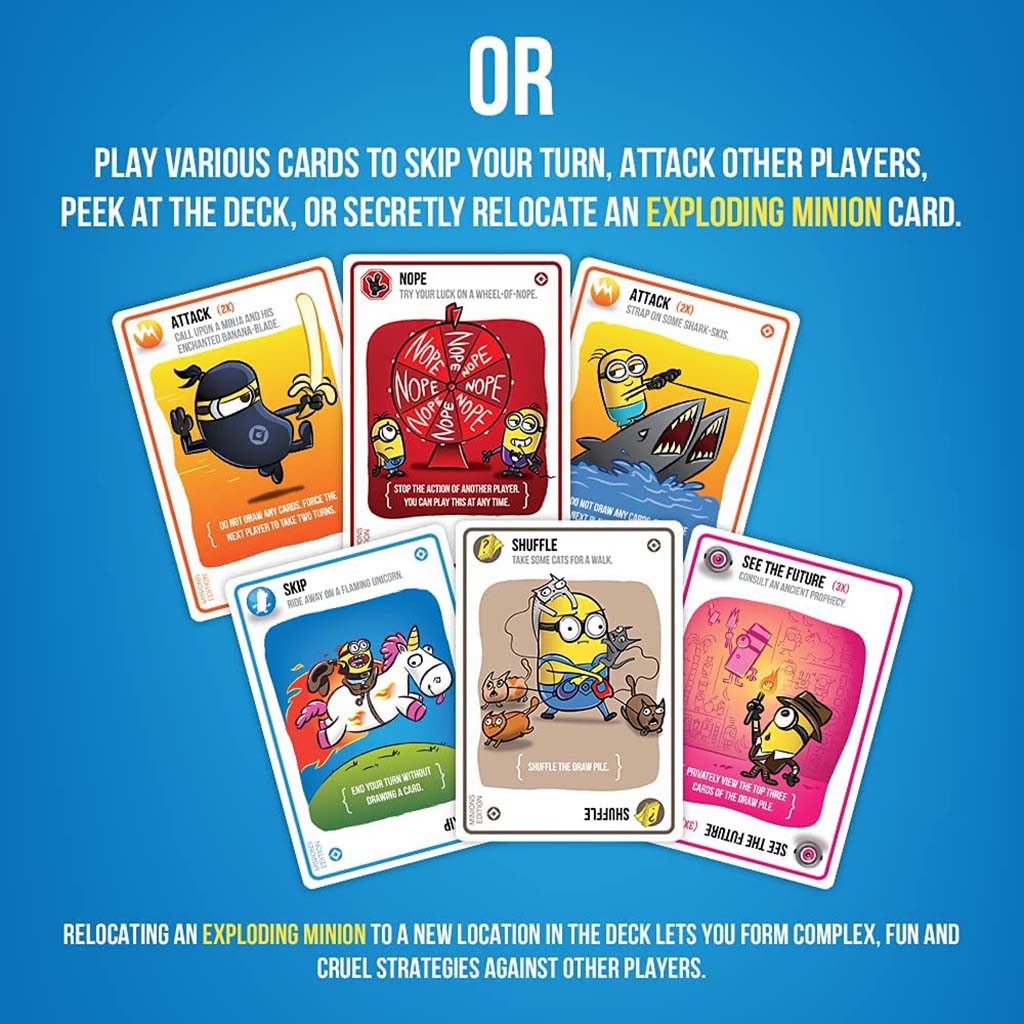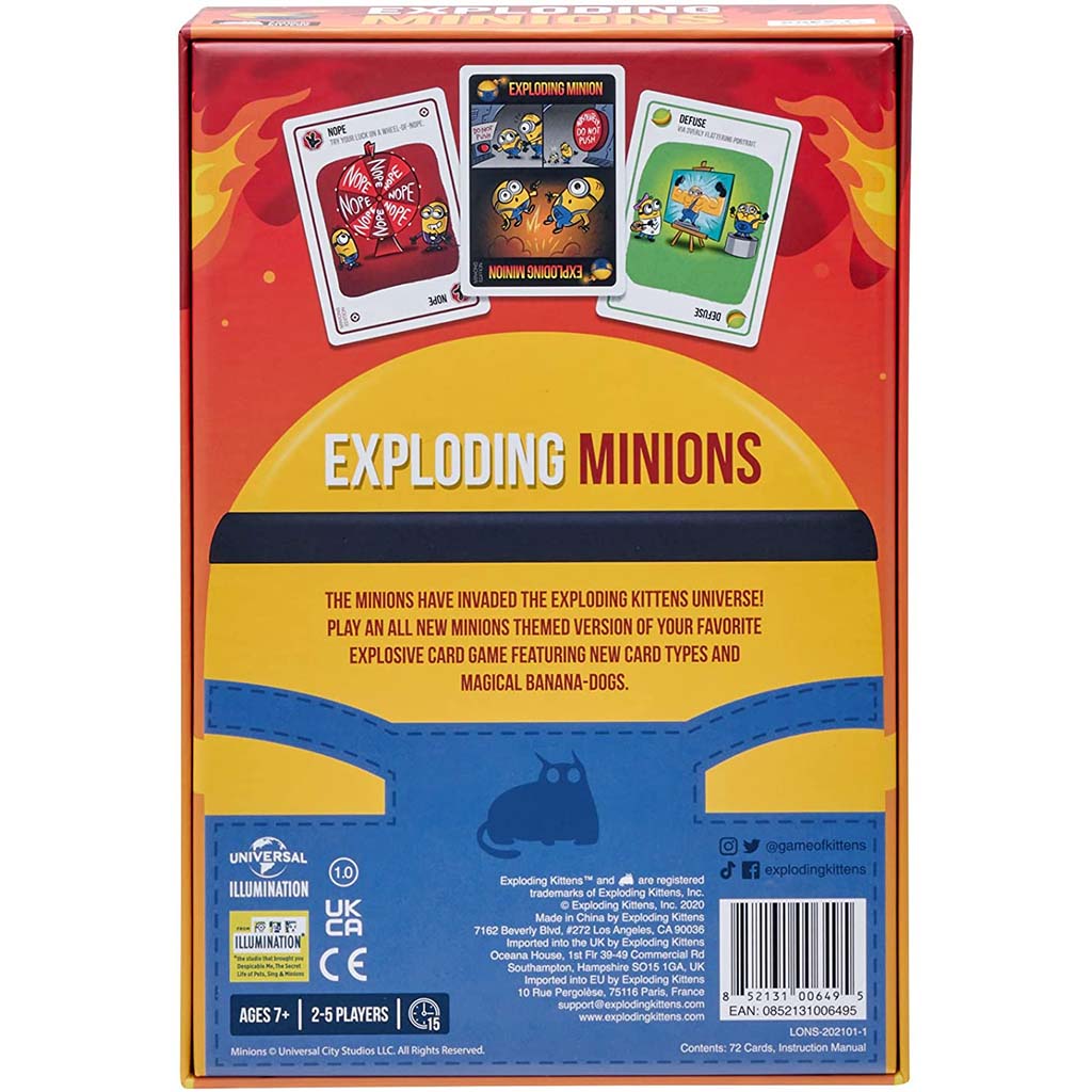 Exploding Minions je samostojna različica priljubljene družabne igro s kartami Exploding Kittens, v kateri minioni zamenjajo mačke.