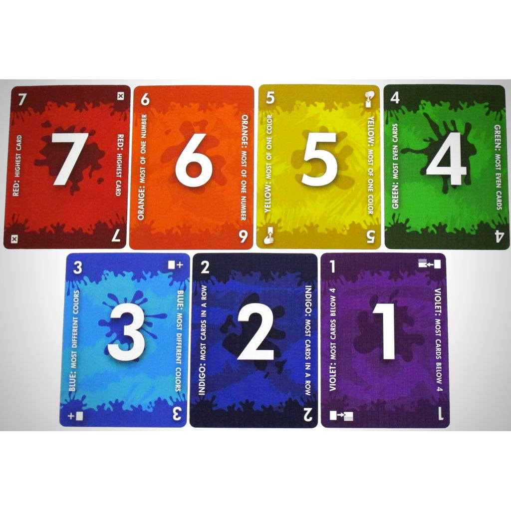 Družabno igro s kartami Red7 sestavlja kupček 49 kart s števili od 1 do 7 iz sedmih mavričnih barv, različnih moči in različnih pravil. Ko ste na potezi, morate upoštevati pravilo, ki je v veljavi. Lahko pa ga spremenite. Če tega ne storite, izgubite.