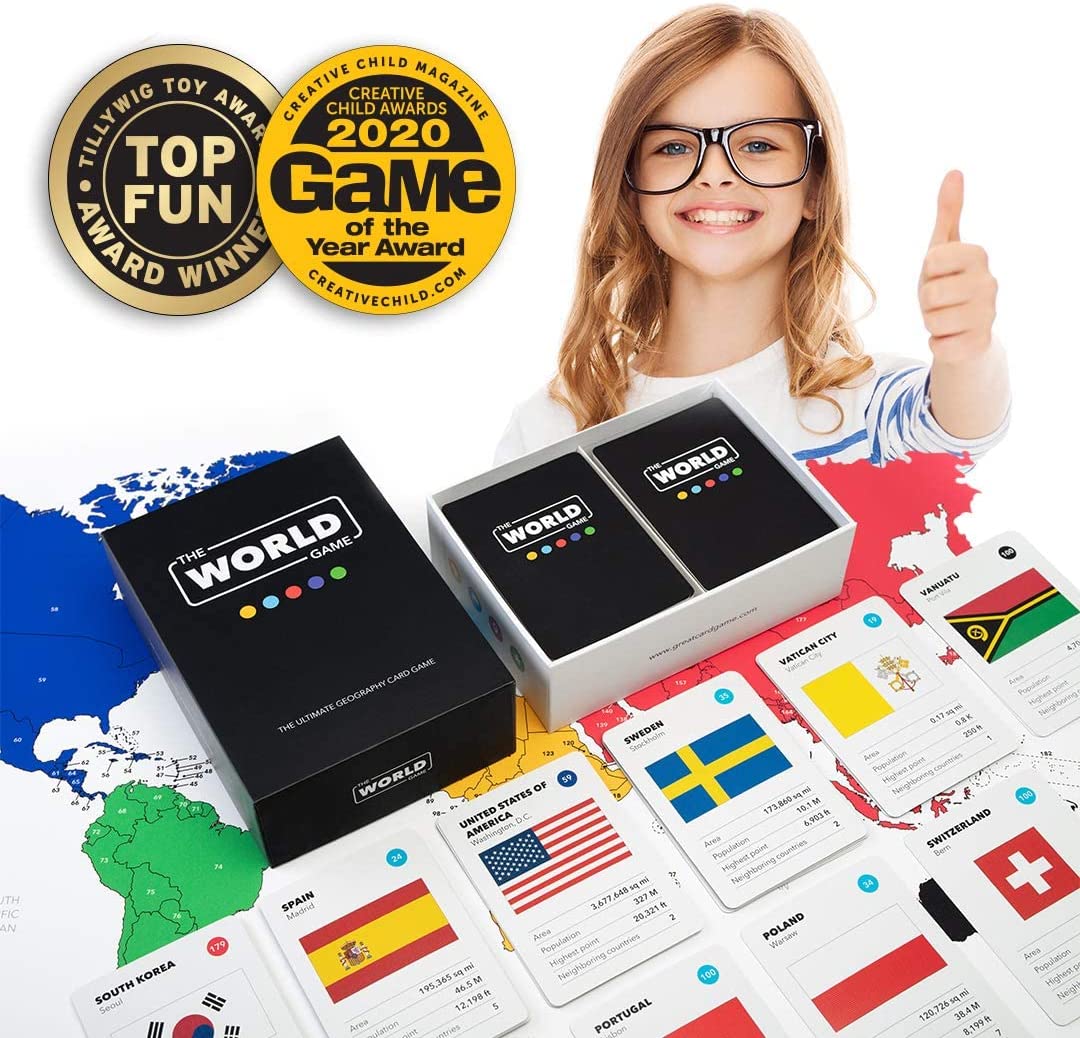 Najsi boš geografski guru ali šele začenjaš svoje globalno raziskovanje, igra svetovne geografije je prilagojena učencem na vseh stopnjah. To je idealna izobraževalna namizna igra za otroke, stare od 8 do 12 let, in pametna ideja za darilo najstnikom.